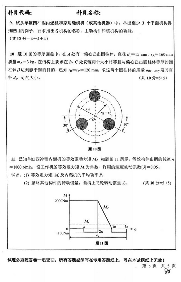 2010中国矿业大学808机械原理考研真题分享下载(5)