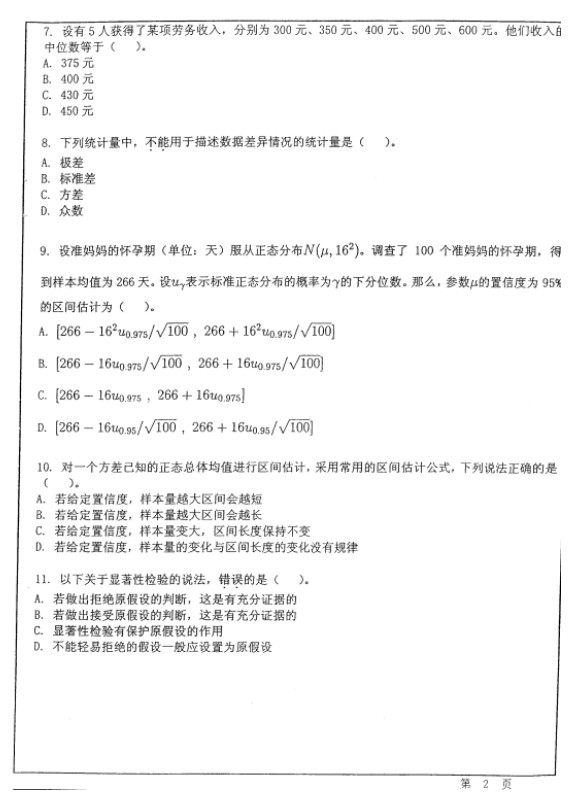 华东师范大学2011年应用统计学硕士430考试真题(2)