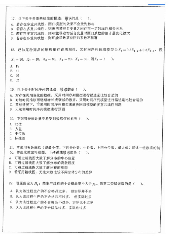 2015西财应用统计(432)真题回忆版