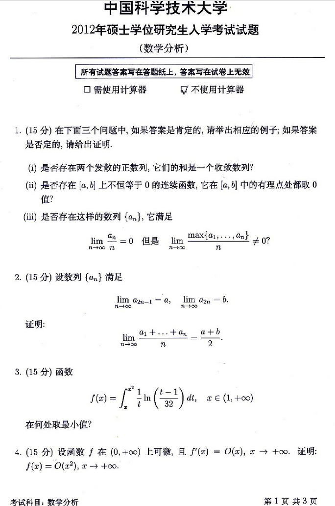 中国科学技术大学2010~2017年数学分析考研真题(5)