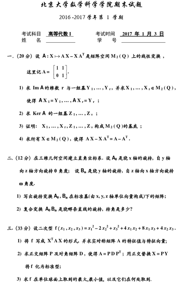 请将答案写在答题纸相应的位置上。考试时间为 180 分钟。