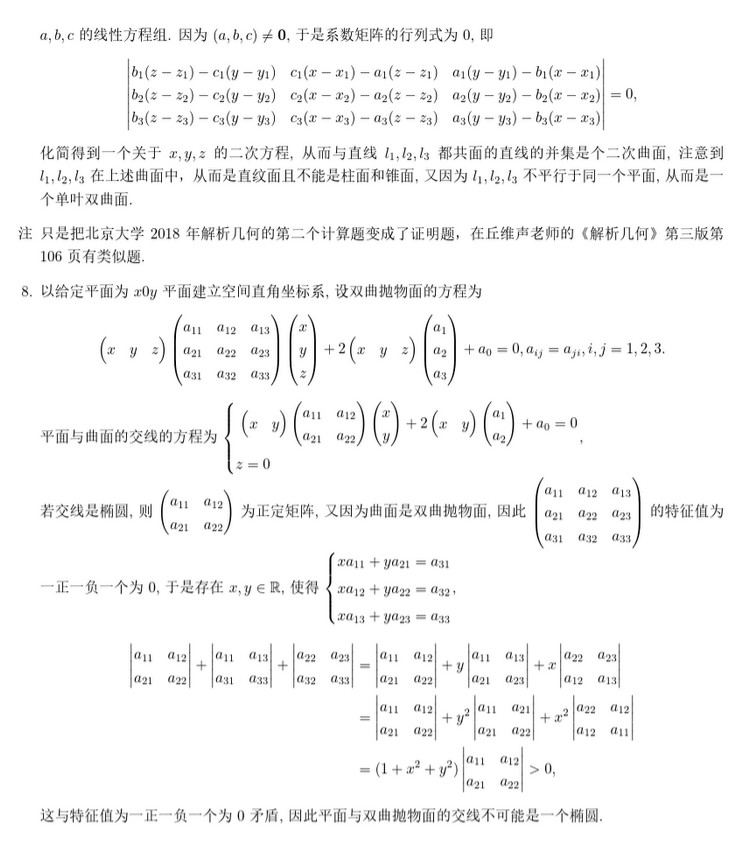 北京大学2019年高等代数与解析几何考研试题及解答(5)