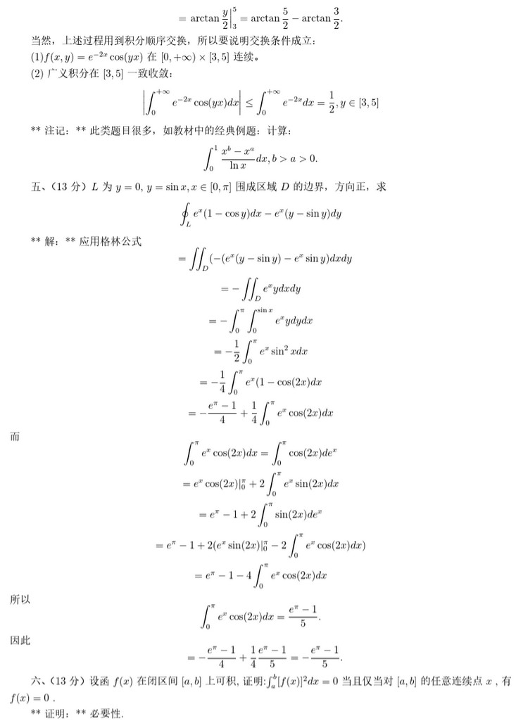 华南理工大学2020年数学分析考研试题参考解答(3)