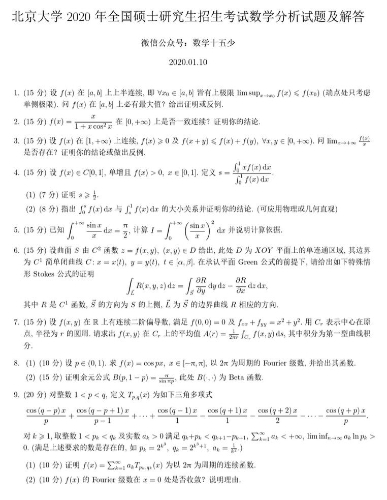 专业课考研资料 本站小编 免费考研网 2020-04-09北京大学2017级数学分析期中考试试题