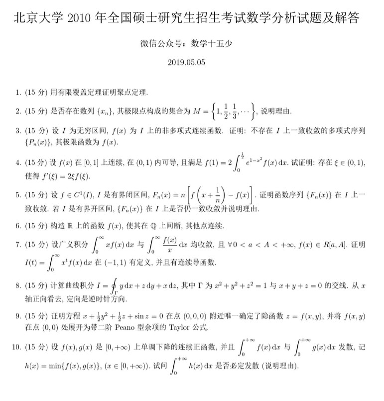 专业课考研资料 本站小编 免费考研网 2020-04-09北京大学2020年数学分析考研试题及解答