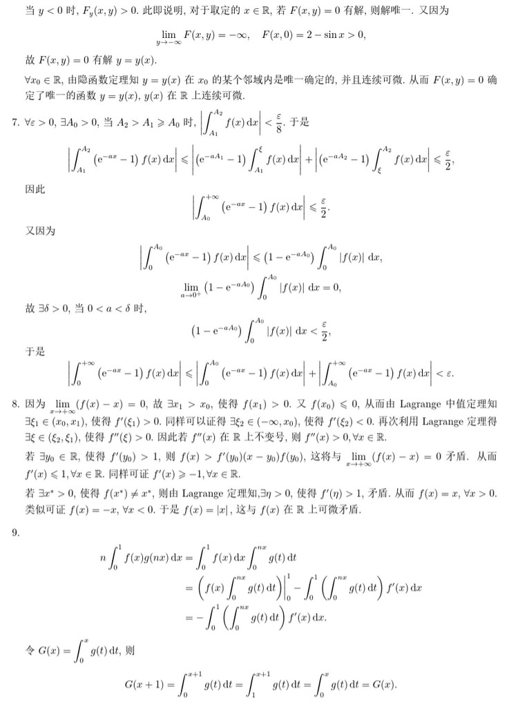 专业课考研资料 本站小编 免费考研网 2020-04-09北京大学2020年数学分析考研试题及解答