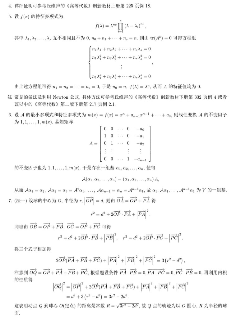 专业课考研资料 本站小编 免费考研网 2020-04-09北京大学2019年高等代数与解析几何考研试题及解答