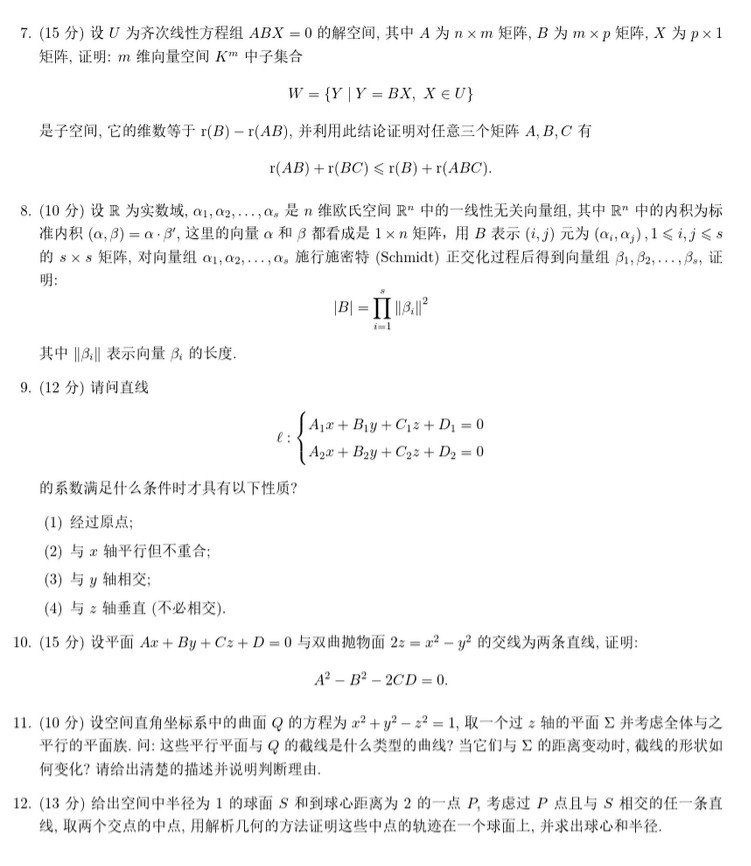 专业课考研资料 本站小编 免费考研网 2020-04-09北京大学2020年高等代数与解析几何试题及答案解答