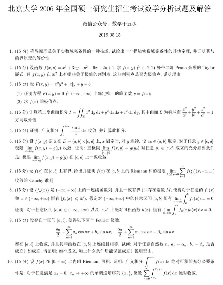 专业课考研资料 本站小编 免费考研网 2020-04-09北京大学2007年数学分析考研试题及解答