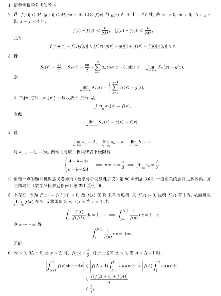 专业课考研资料 本站小编 免费考研网 2020-04-09北京大学2020年数学分析考研试题及解答