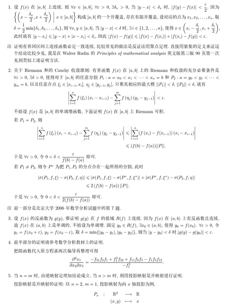 专业课考研资料 本站小编 免费考研网 2020-04-09北京大学2006年数学分析考研试题及解答