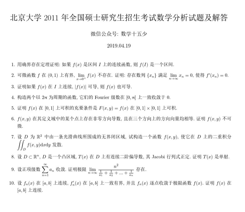 北京大学2011年数学分析试题及解答