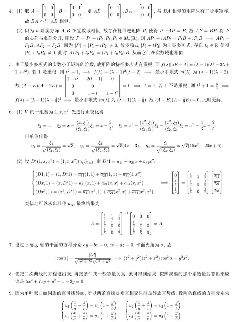 专业课考研资料 本站小编 免费考研网 2020-04-22北京大学2019年高等代数与解析几何试题及解答