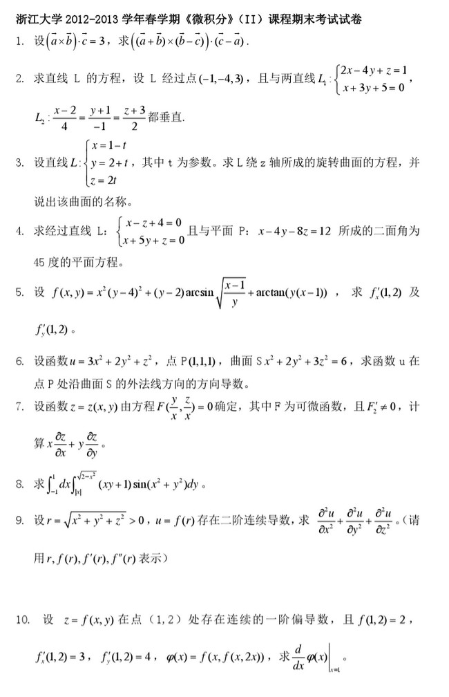 浙江大学2013-2014微积分期末考试试卷带手写详细答案(2)