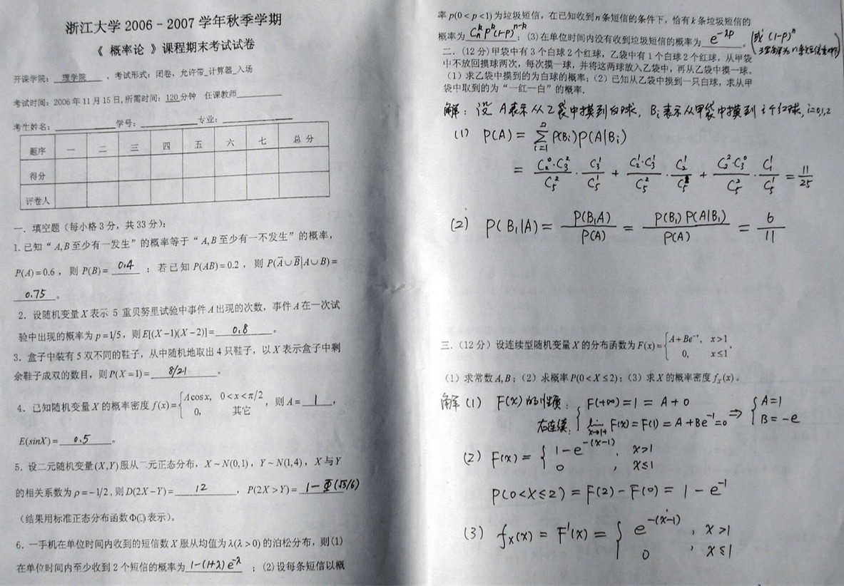 浙江大学概率论2005~2008期末试卷及答案(5)