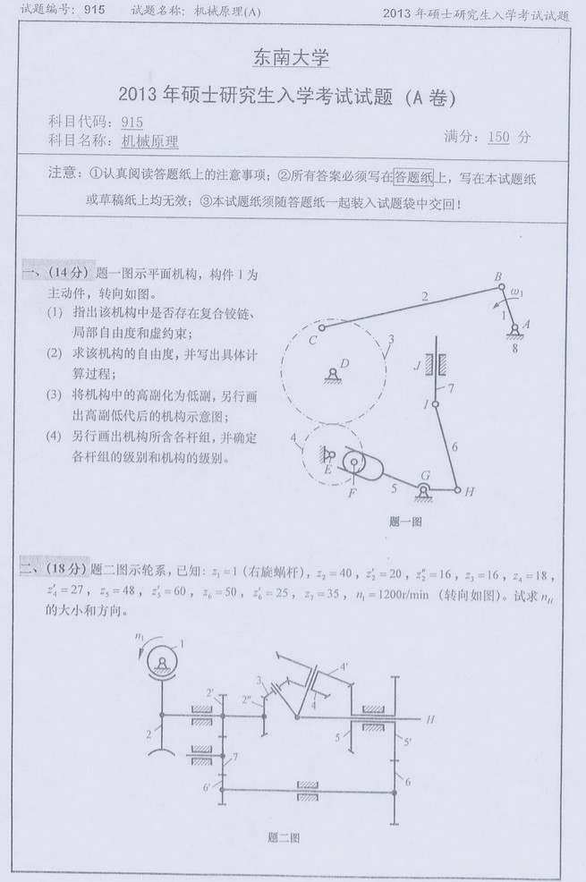 考研分数线 本站小编 免费考研网 2020-04-196套东南大学机械原理模拟试题