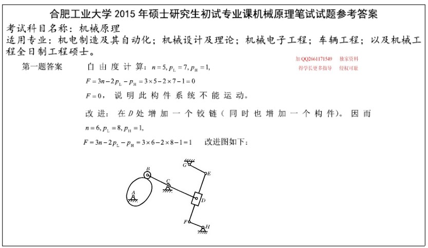 合肥工业大学2015年初试机械原理考研试题参考答案