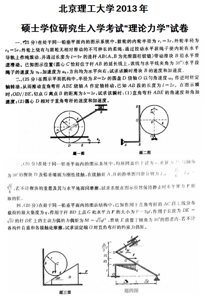 2013北京理工大学848理论力学考研真题