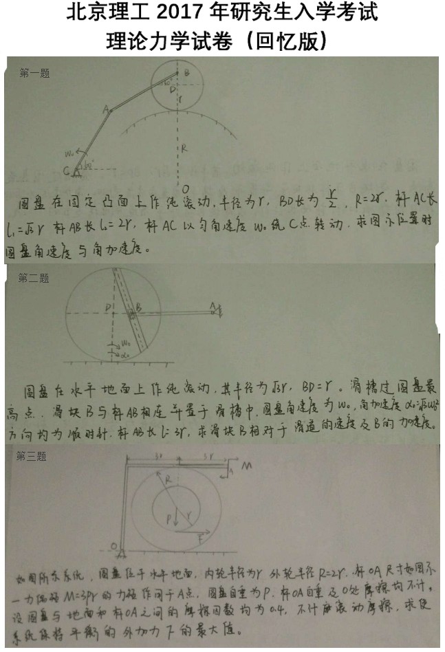 2017北京理工大学848理论力学考研真题