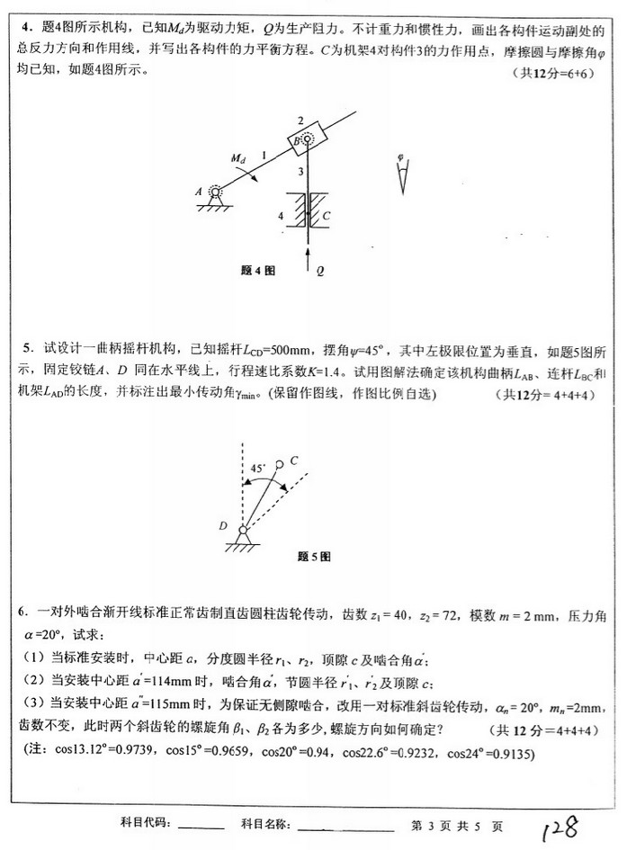 2011中国矿业大学机械原理专业课考研真题(3)