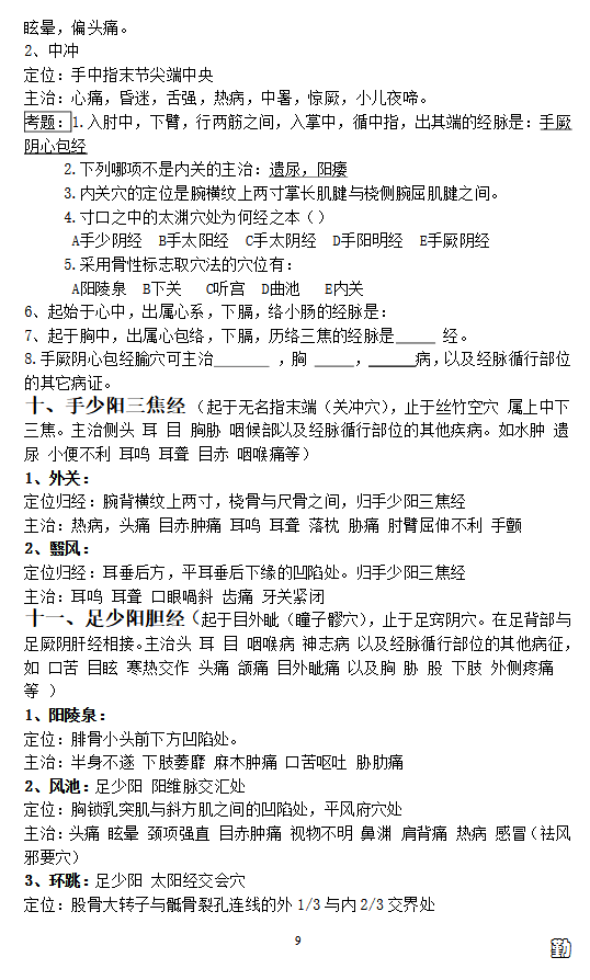 针灸学重点总结 针灸学笔记(期末考研复试)(9)
