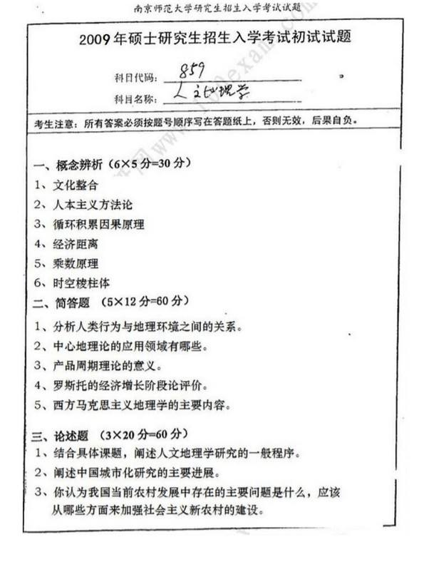 南京师范大学地理科学学院人文地理学历年考研真题汇编(3)