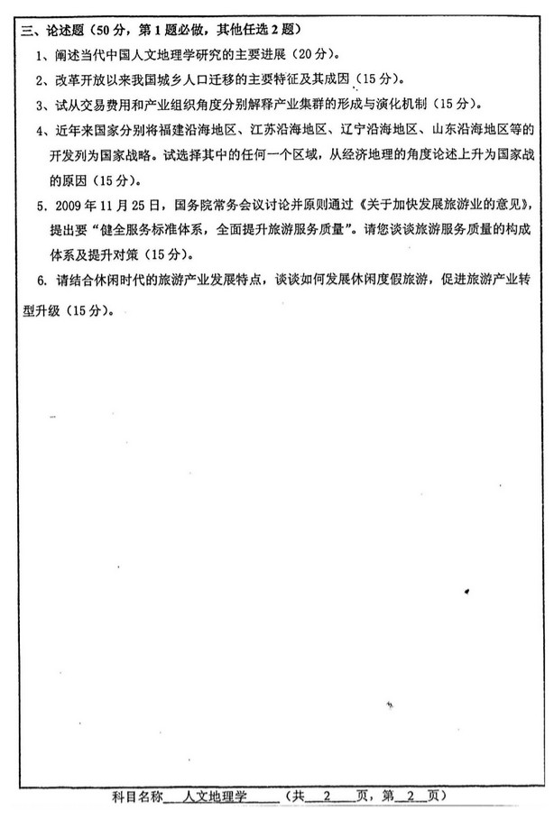 南京师范大学地理科学学院人文地理学历年考研真题汇编(5)