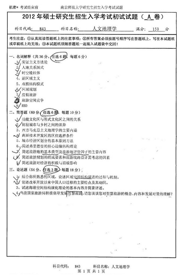 南京师范大学地理科学学院人文地理学历年考研真题汇编(7)