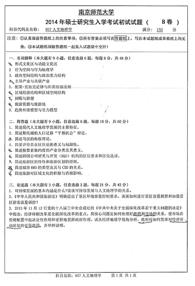南京师范大学地理科学学院人文地理学历年考研真题汇编(9)