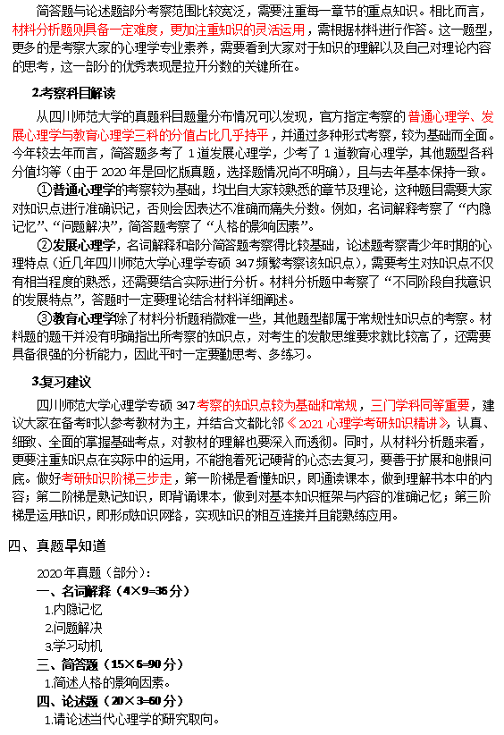 2020年四川师范大学心理学专硕347考研真题分析(2)