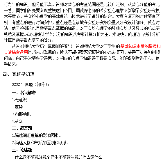 2020年首都师范大学心理学专硕347考研真题分析(3)