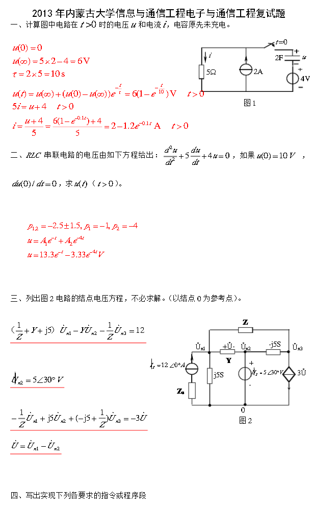2013年内蒙古大学信息与通信工程电子与通信工程复试题