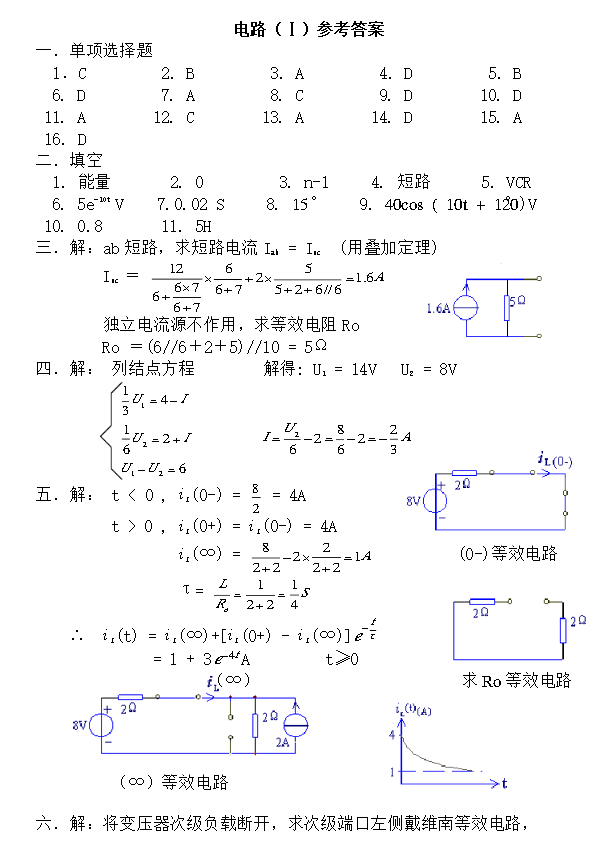 2017年内蒙古大学电子通信工程考研复试试题电路分析基础部分题库(7)