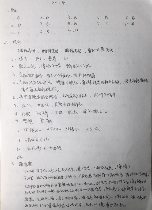 南京大学环境工程2014年考研真题手写版答案