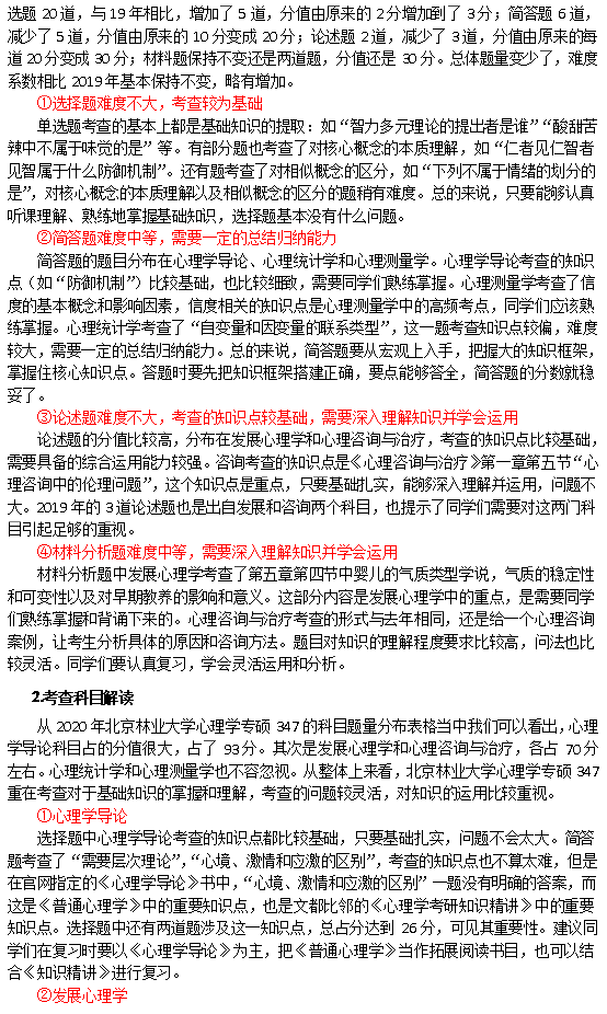 2020年北京林业大学心理学专硕347考研真题分析(2)