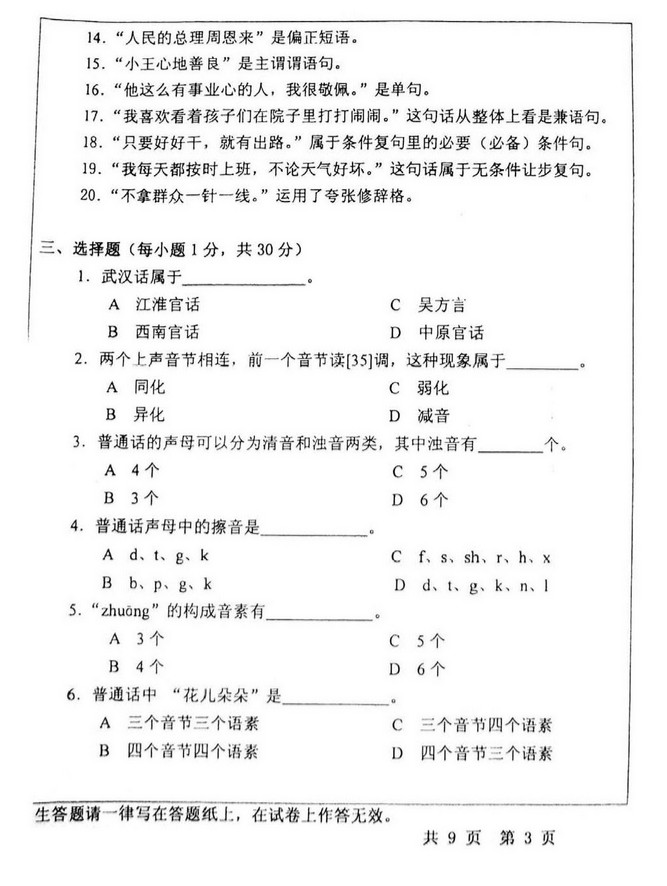 2010年华中师范大学汉语基础考研真题及答案(3)