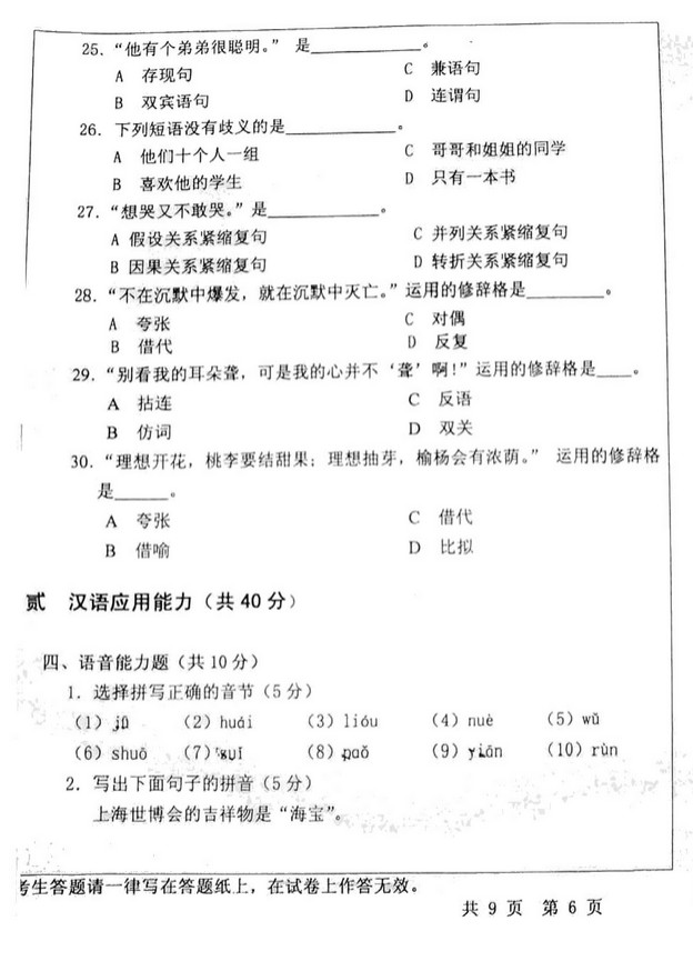 2010年华中师范大学汉语基础考研真题及答案(6)