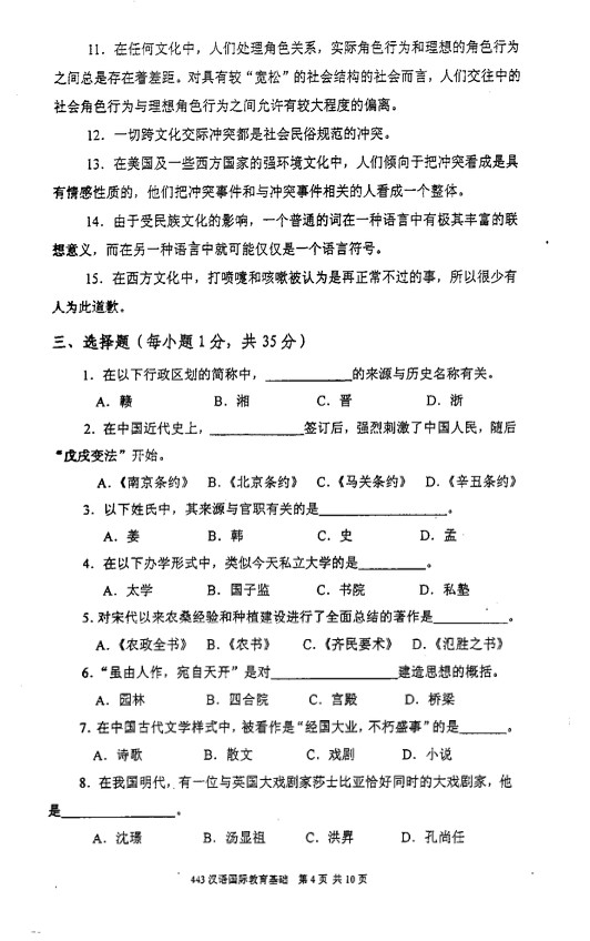 2010年厦门大学汉语国际教育基础考研试题(4)