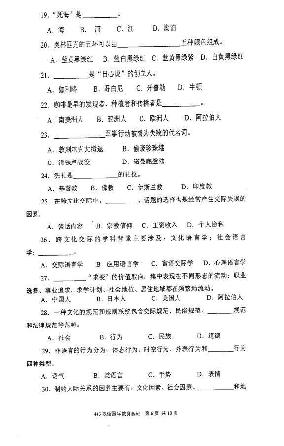 2010年厦门大学汉语国际教育基础考研试题(6)