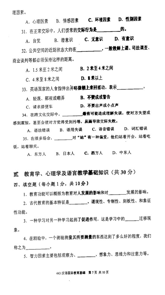 2010年厦门大学汉语国际教育基础考研试题(7)