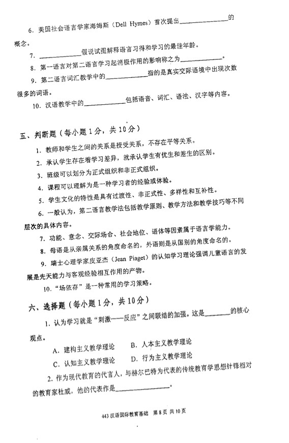 2010年厦门大学汉语国际教育基础考研试题(8)