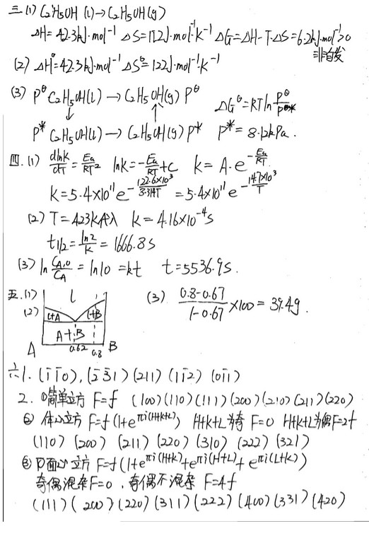 北京航空航天大学2011-2013年物理化学考研真题 答案(9)