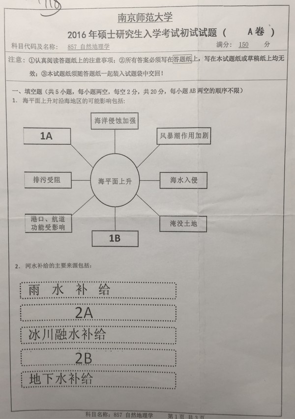 南京师范大学自然地理学2016年考研专业课试题