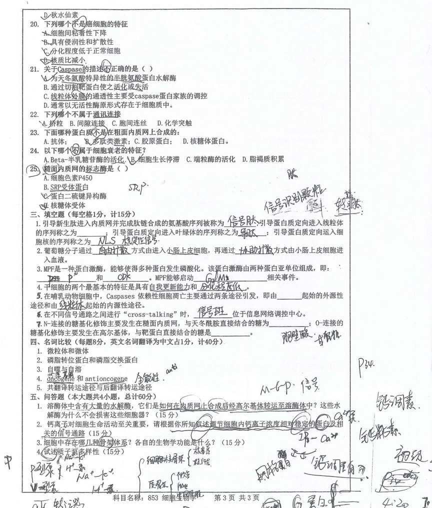 南京师范大学细胞生物学2016年考研专业课试题(3)