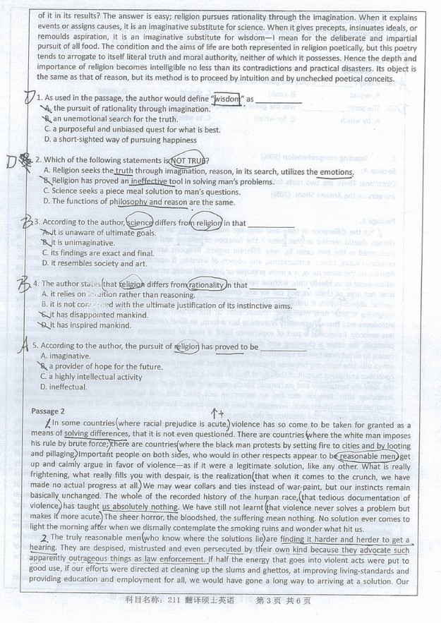 南京师范大学翻译硕士英语2016年考研专业课试题(3)