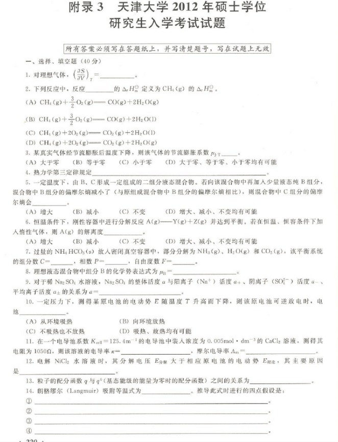 天津大学2017年考研物理化学试题及答案 本站小编 免费考研网 2020-02-21