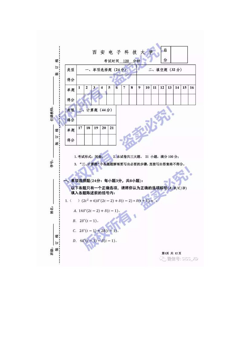 2020西安电子科技大学信号系统期末考试试题全解全析