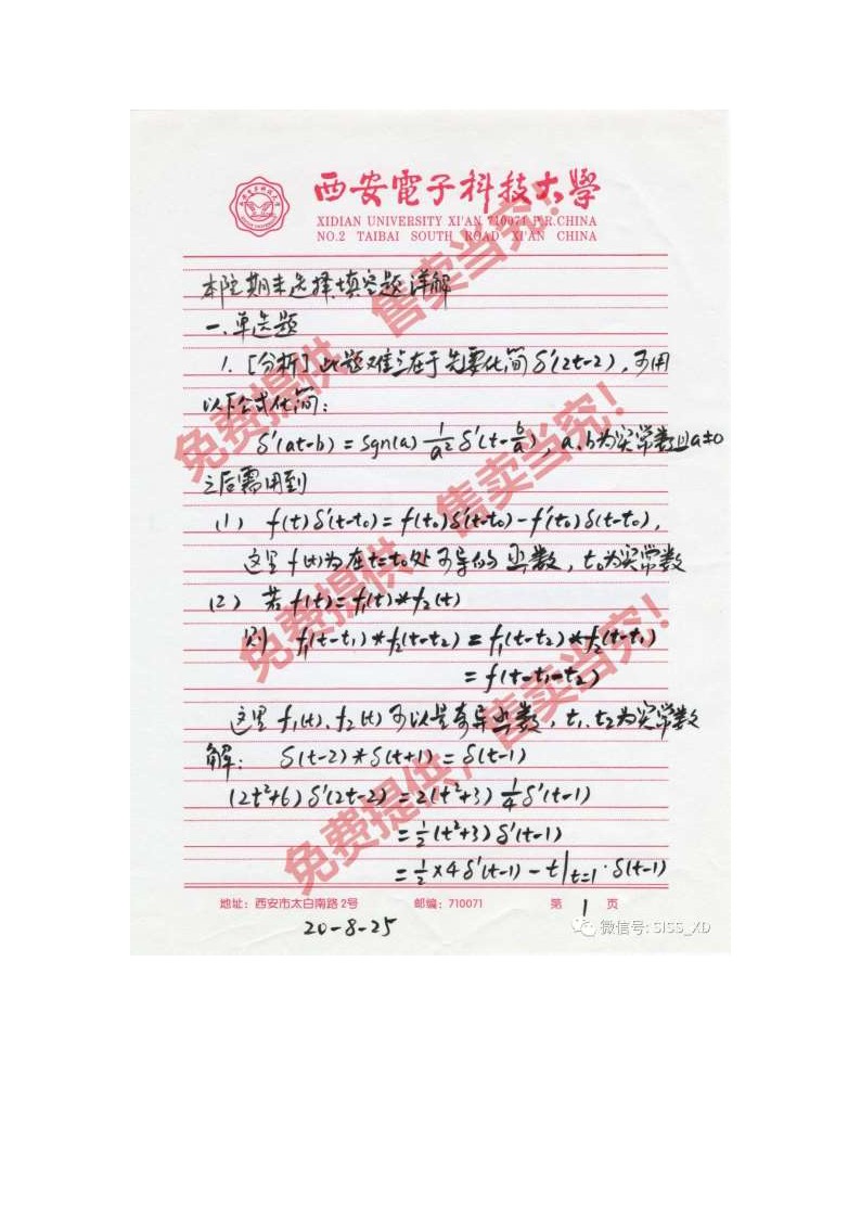 2020西安电子科技大学信号系统期末考试试题全解全析(11)
