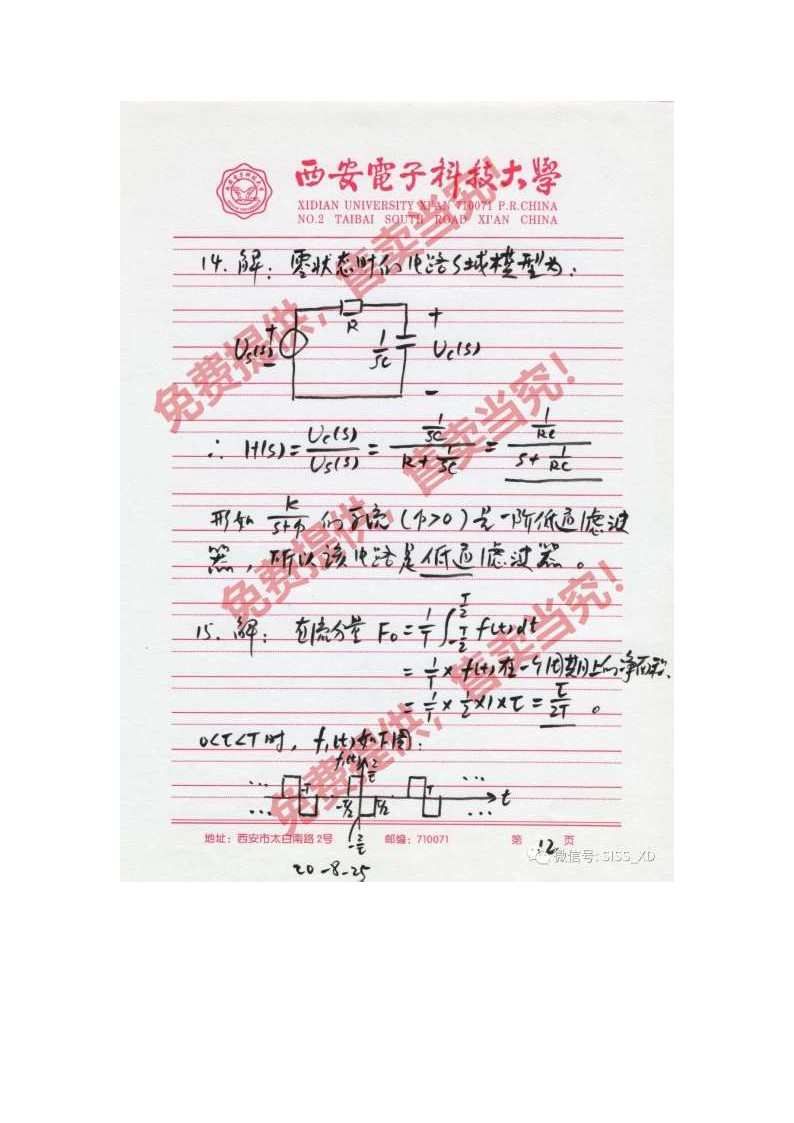 2020西安电子科技大学信号系统期末考试试题全解全析(22)