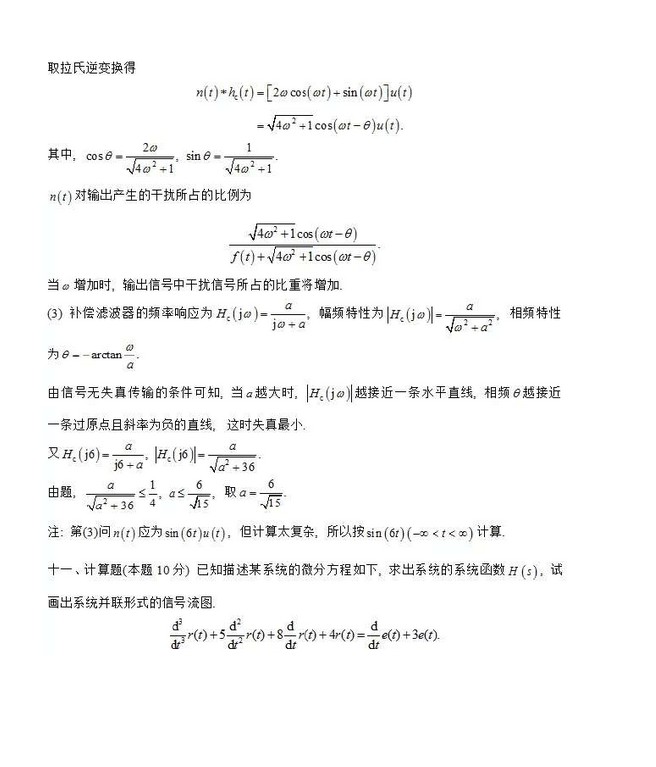 2014北京邮电大学考研信号系统804初试试题全解全析(19)